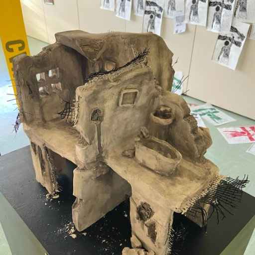 Techniques and tools vary a lot depending on the intention of the artist, therefore this would vary if the topic I presented was also different – but I found that sculpture with clay was the best way (but also my favorite way) to recreate some parts of my stories. I loved the imperfections of it and how it just all became a meaningful part of the story, once the work was done. The material itself sometimes behaved in an unexpected way which I could use in my interest. For example, in the sculpture called “Leftover”, I mixed clay with different types of wires. The result after taking it from the oven was unexpected. The sculpture broke or cracked in some places I didn’t consider but I found it very interesting afterwards.
